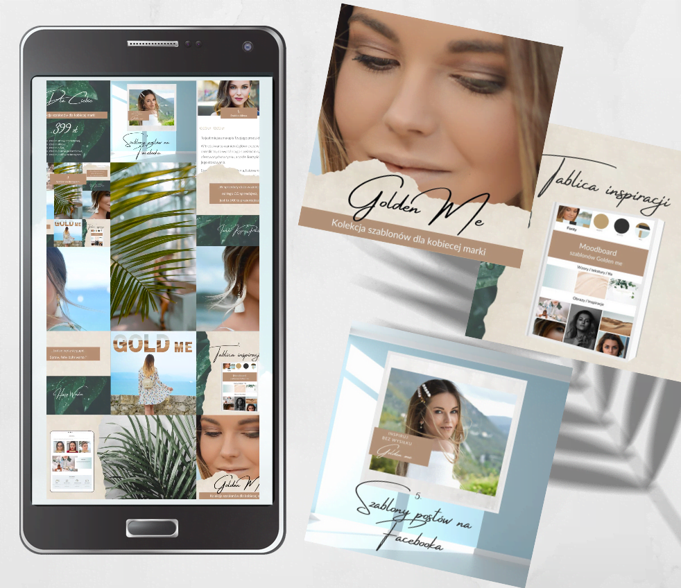 Szablony są częścią linii stylistycznej Golden Me. Jeśli korzystasz z szablonu strony internetowej oraz szablonów mediów społecznościowych budujesz spójny obraz marki. Gratulujemy!